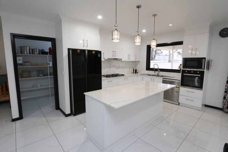 Spacious lounge/theatre room featuring mood lights. Light filled, open plan kitchen, dining and lounge room that is sure impress. The high-end kitchen includes marble counter tops, an abundance of bench space and cupboards; soft close drawers, island bench, dishwasher, gas cooking, wall oven, double fridge space and huge walk in pantry. Ducted heating and cooling throughout, keeping the home comfortable all year round.