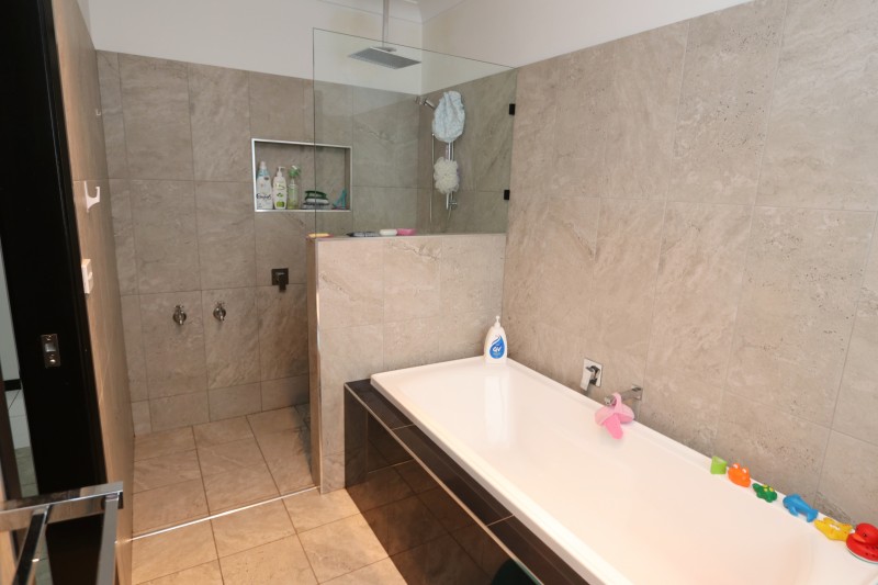 Comprised of 4 large bedrooms all with Built in robe & ceiling fans, master is generous in size, walk through his and her robes & en-suite with shower, vanity and toilet.