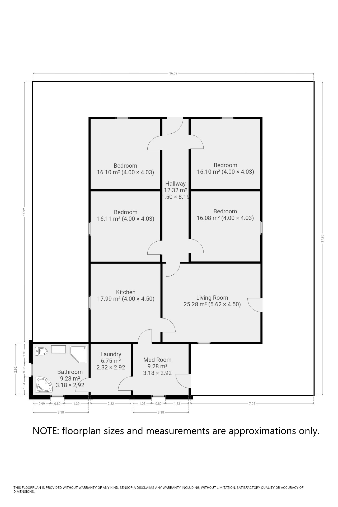 • Tiled family bathroom hosts a shower, corner spa bath, toilet. Large walk through laundry and mud room.