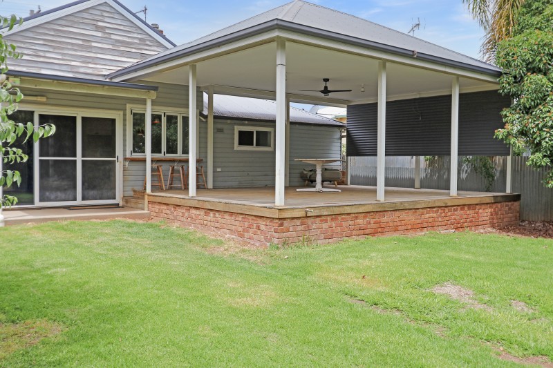 External features include a timber front verandah set around cottage style gardens and a picket fence. Walking out of the internal living space is a large timber deck over looking the backyard that includes privacy screening and ceiling fans and gas bayonets, making it the perfect space for entertaining. Paved area for a fire pit for those cooler winter nights. Other features include a cubby house, clothesline and three water tanks.