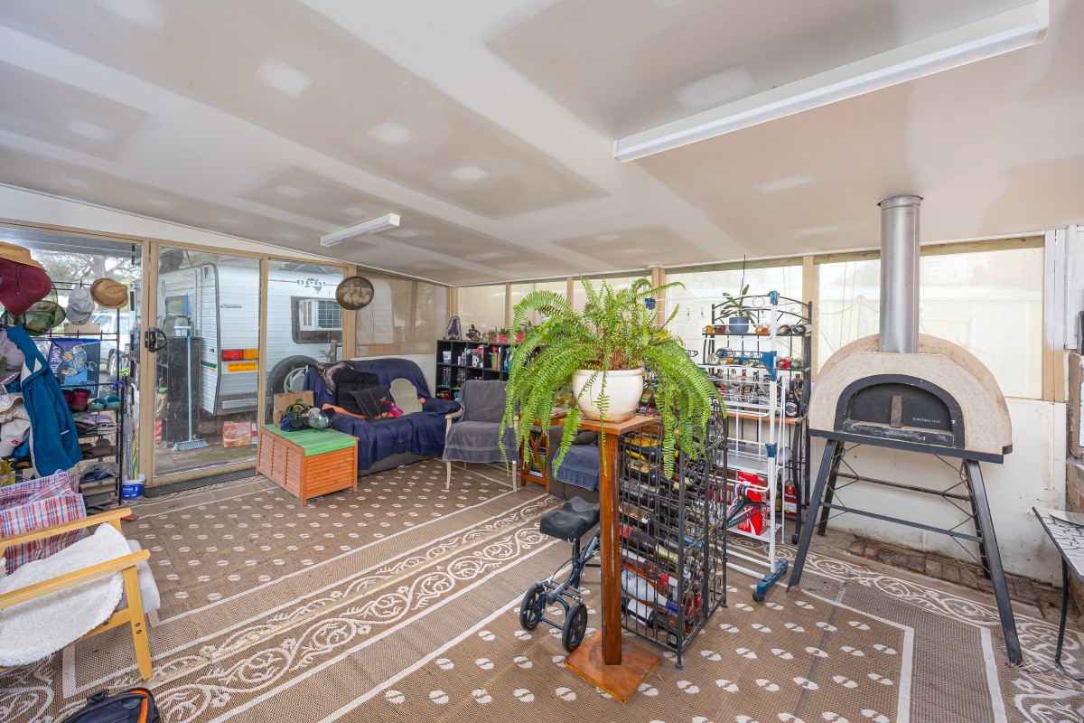 External features include an enclosed entertainment area with pizza oven, bbq area, storage room and separate toilet. Other features are a double carport, single garage, garden shedding, greenhouse, hot house, bird aviaries, citrus and fruit trees, 14 panel solar system and multiple water tanks.