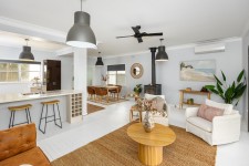 Enjoy township views from the expansive open-plan living area, highlighted by 3-stacker glass sliding doors that open to a west-facing deck-perfect for entertaining. A fresh interior palette of white timber flooring, neutral tones, and new blinds adds a contemporary feel throughout.