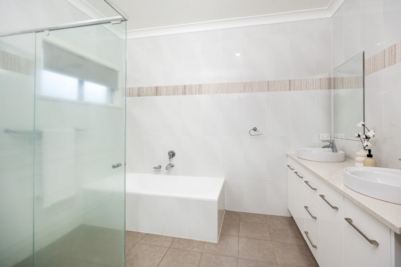 Featuring three generously sized bedrooms, each with built-in robes and ceiling fans, the master suite also enjoys direct access to the deck through a glass sliding door. A versatile fourth bedroom or home office caters to growing families or remote work needs.