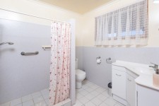 The tiled three-way family bathroom includes a separate bath, shower, and toilet for convenience, and the large internal laundry offers additional storage space.