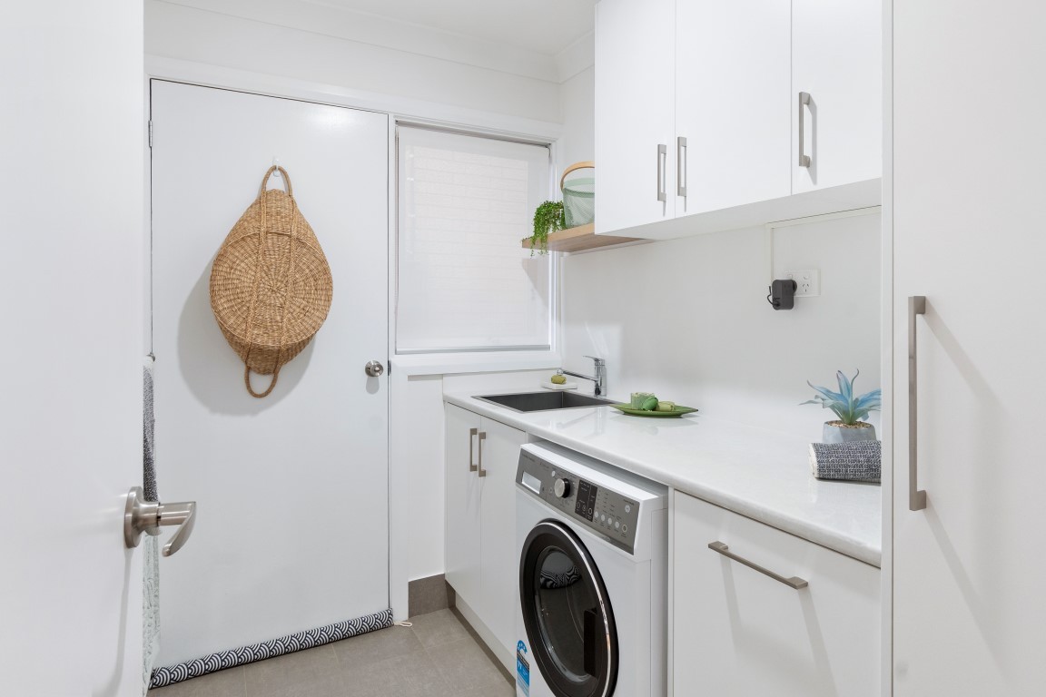 • As-new laundry with great cupboard space