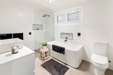Step inside to discover three spacious double bedrooms, each with renewed built-in robes, including a luxurious master suite featuring an elegant ensuite with walk-in shower. The main bathroom is tiled to the ceiling and includes a freestanding bathtub, walk-in shower, toilet, and vanity - ideal for family comfort.