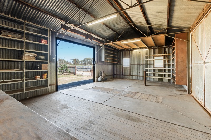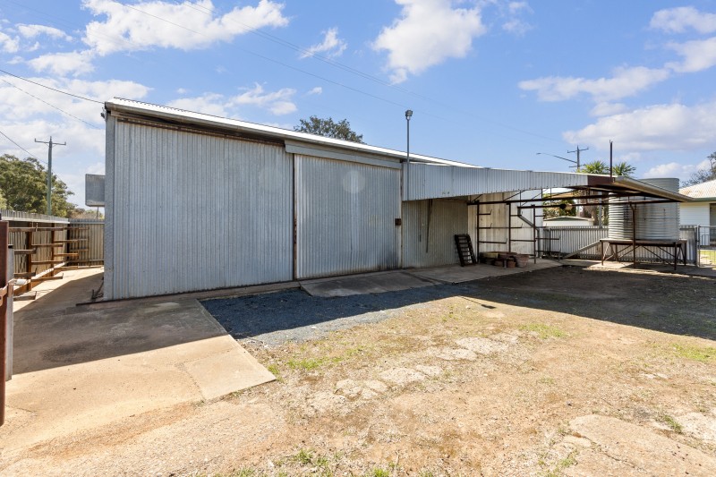 A sizeable steel-framed shed/workshop, complete with 3-phase power, lighting, predominantly concrete flooring, mezzanine storage, and an adjoining skillion for storage or parking sits at the rear of the property-ideal for the hobbyist or tradesperson.