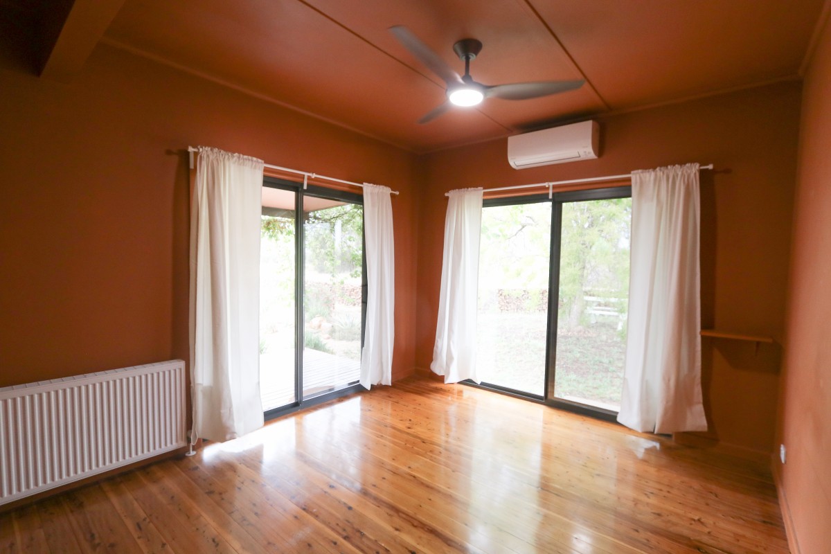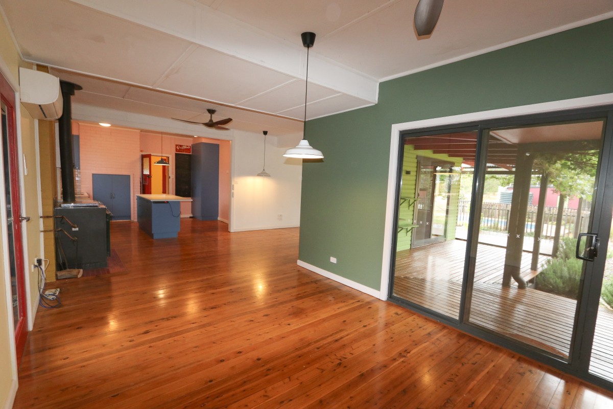 Inside, you'll find four spacious bedrooms, all with polished floorboards and ceiling fans. The master suite includes external access, a split system, and a walk-in robe, offering a true retreat. The open-plan living area features a bright and inviting kitchen, dining and lounge space complete with polished timber floors, ceiling fans and a cosy wood fireplace.