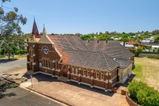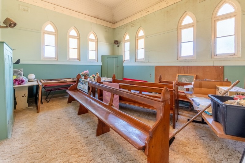 • Uniting Church building - entrance off DeBoos Street. Includes original stained glass windows, pressed tin ceilings, electric heating, newer gas heating, and a smaller hall/Sunday School room currently used for storage.
