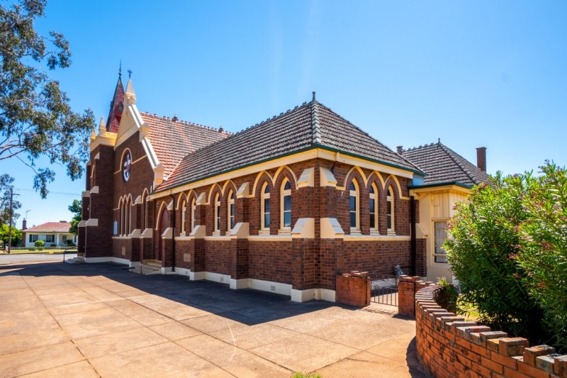 Situated on a generous corner allotment of half an acre (2024sqm), the Uniting Church building is ready for its next chapter. This impressive brick property features classic architectural details - stained glass windows, cypress floorboards, magnificent pressed tin ceilings, and an abundance of space.