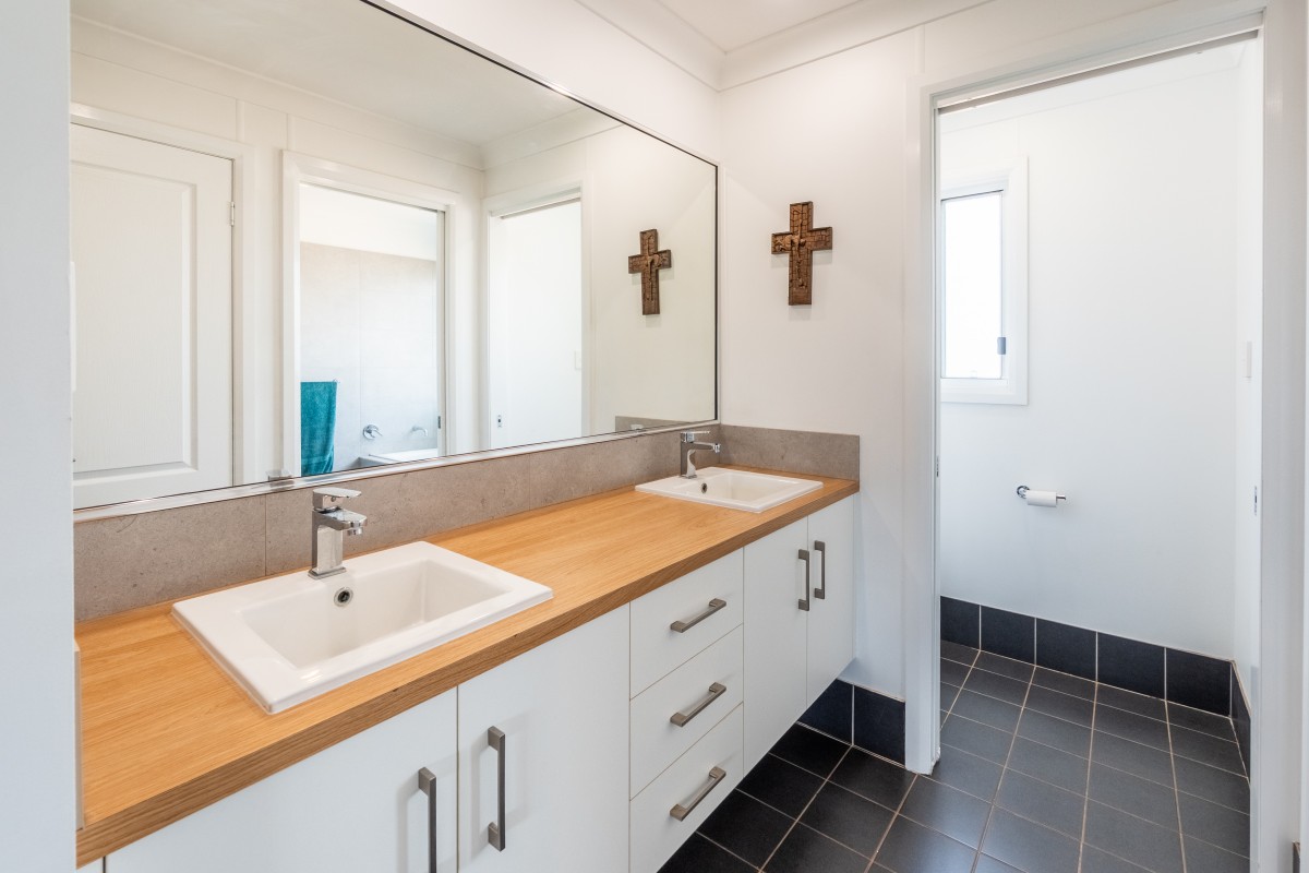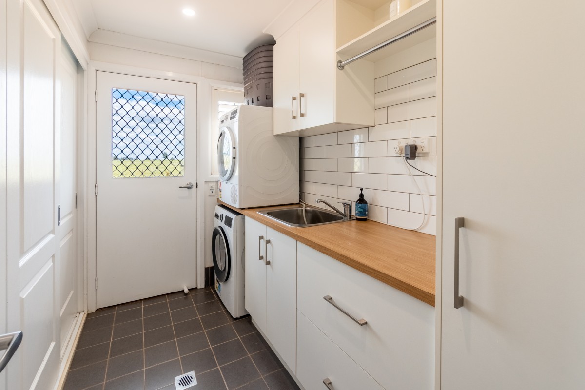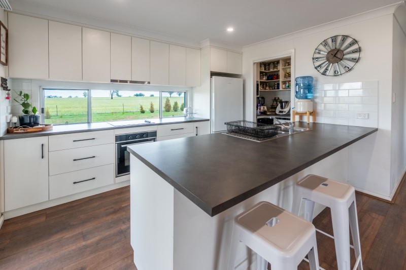 At the heart of the home is a large living area adjoining the open-plan kitchen, which includes a butler's pantry and dishwasher, making it ideal for both everyday living and entertaining.