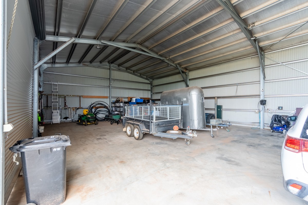 Water security is provided by five 5,000L rainwater tanks, servicing both the house and shed. All tanks are interconnected and supported by two water pumps, offering a reliable supply for sheds, water troughs and watering of lawns and trees.