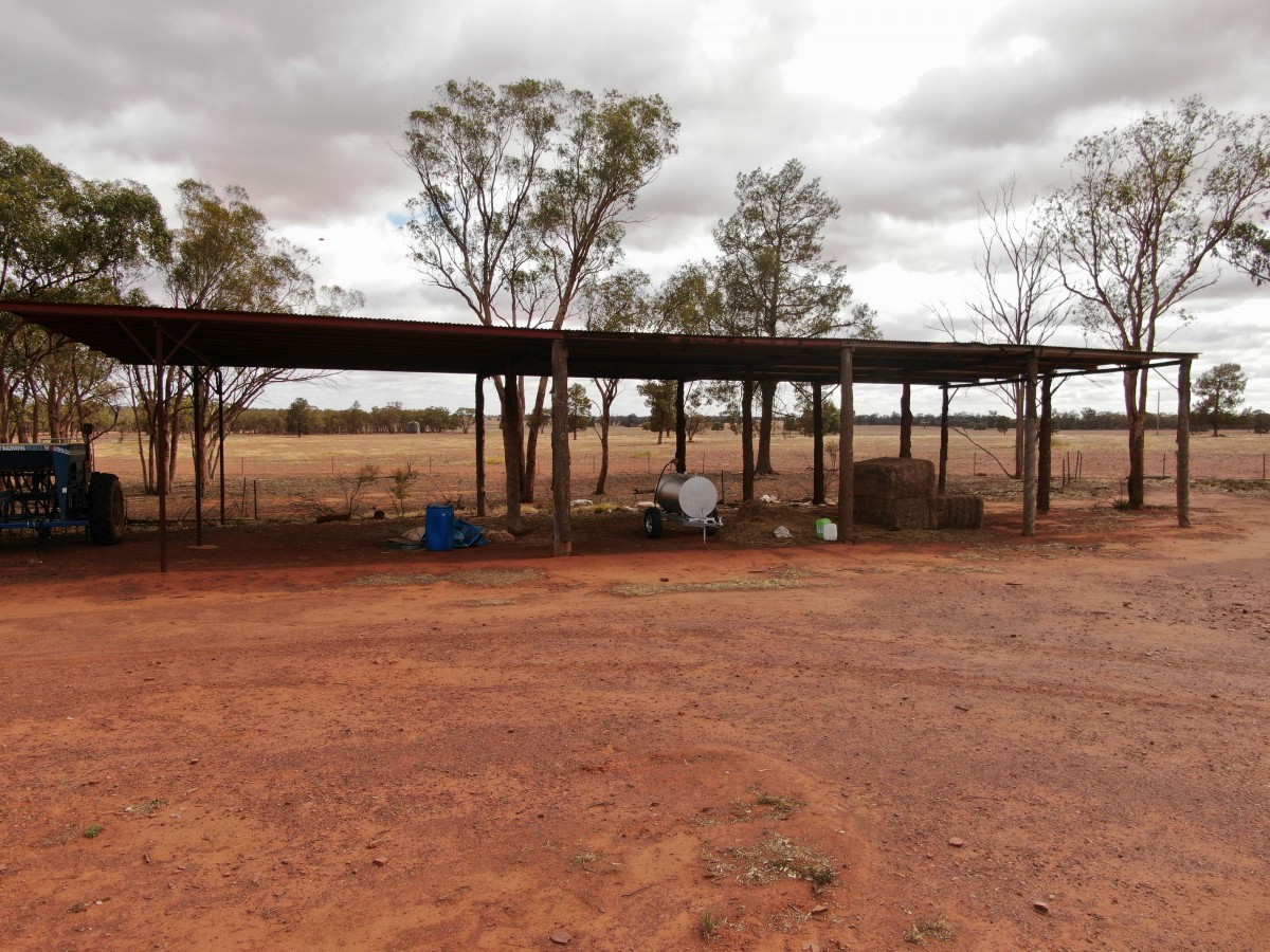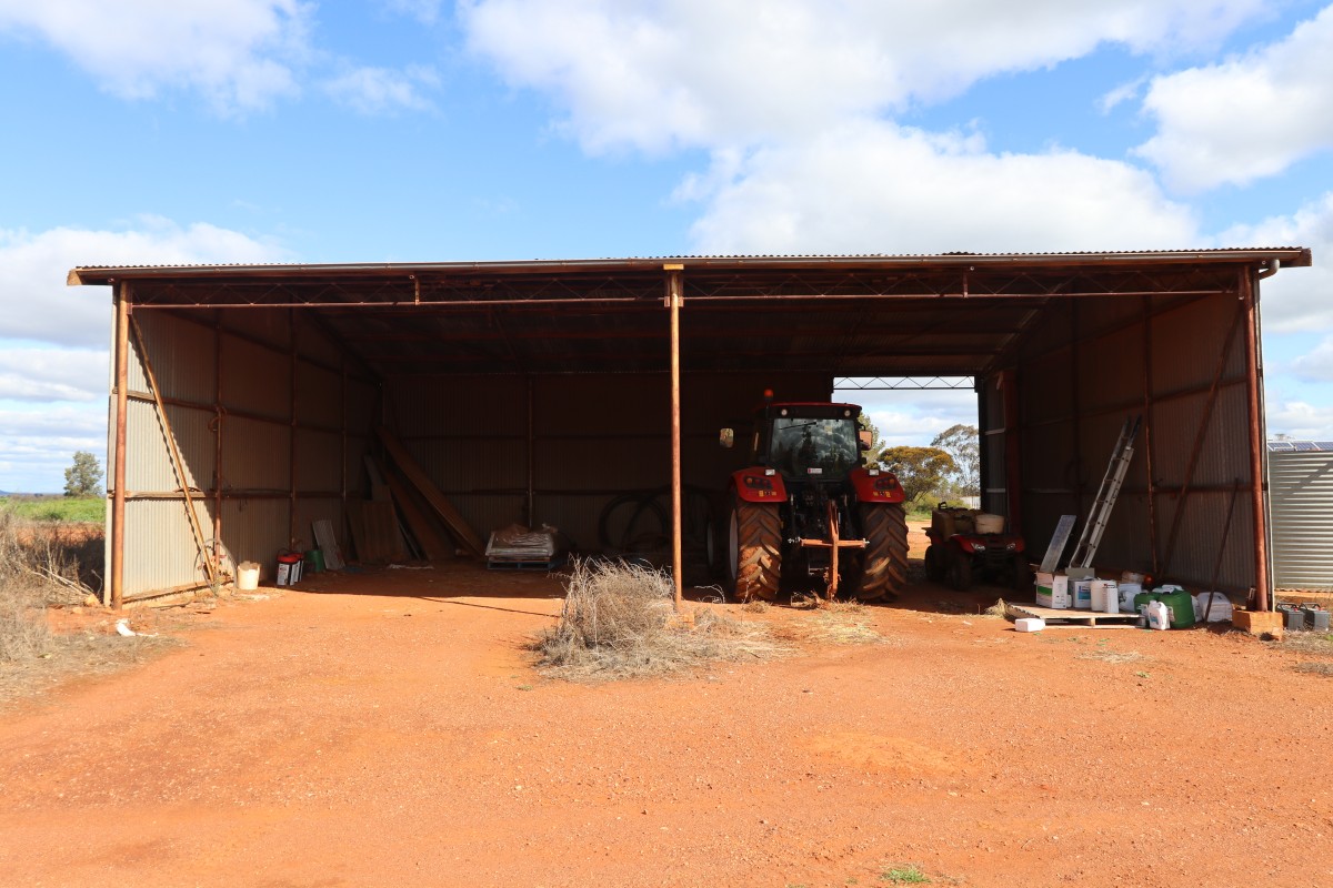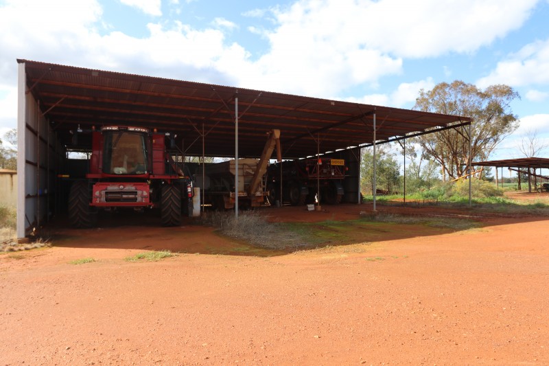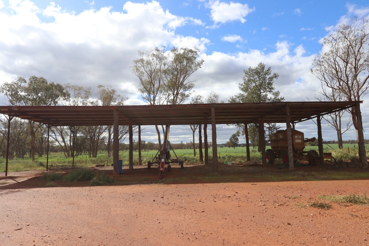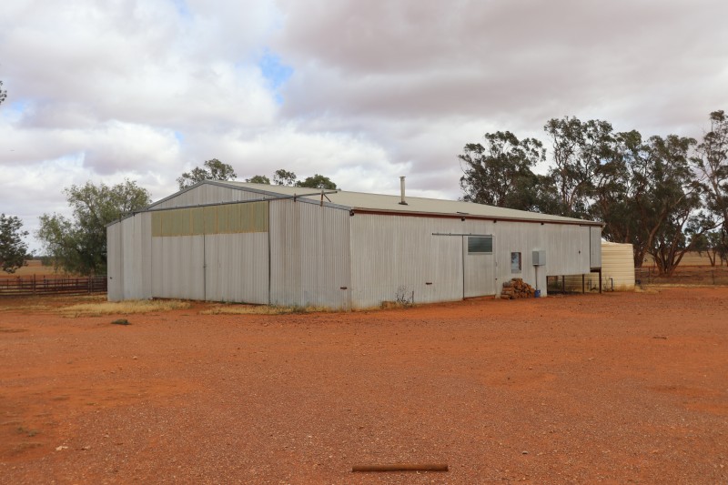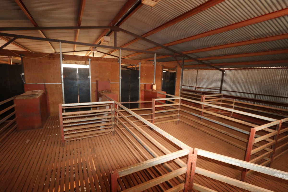 - Workshop with concrete floor and pit, 2 x machinery sheds, hay shed, stud shed with 30 pens, grain shed.