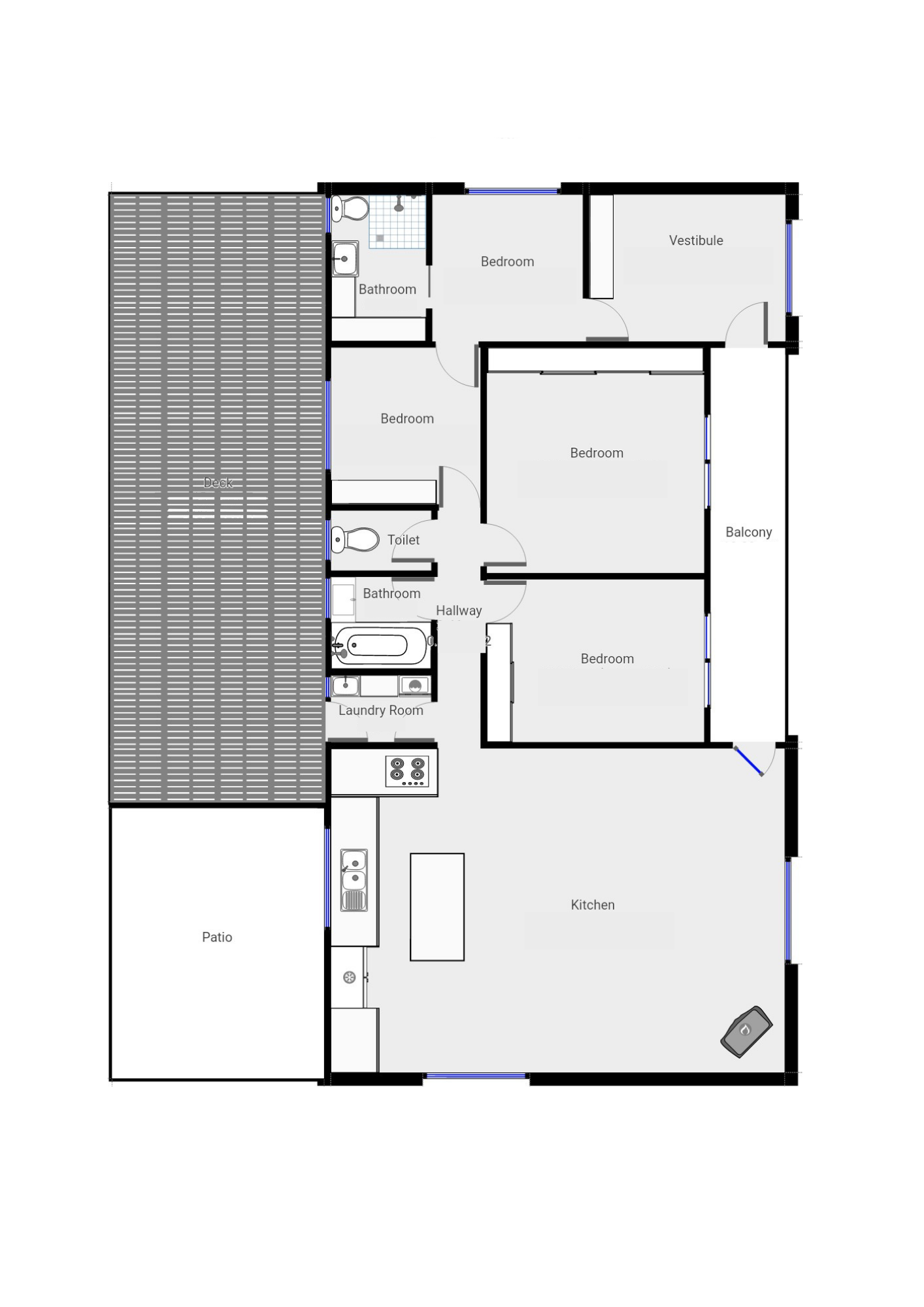 - Modern open plan living/dining/kitchen hub greets you at the front door, and is finished with hardy bamboo flooring.