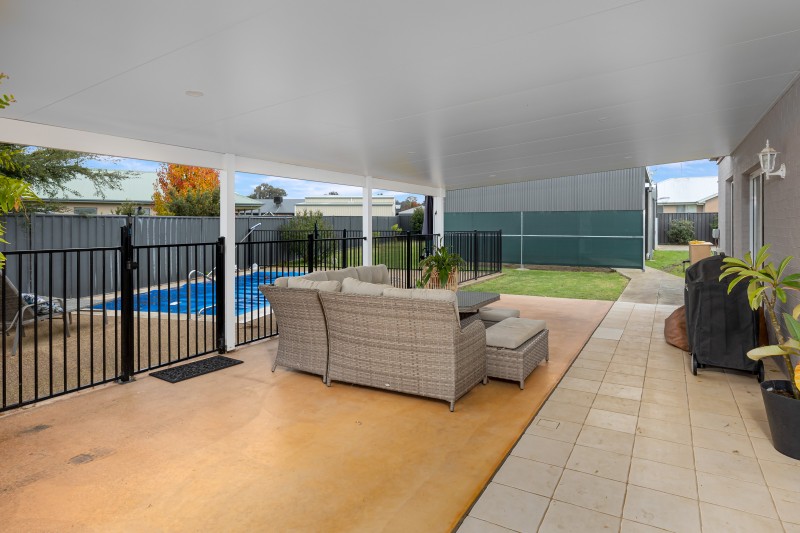 Internally comprising of 3 bedrooms all with built-in robes plus office/4th also with built-in robes. Generous master bedroom with office or convert to walk-in robe and ensuite with shower, vanity and toilet. Open plan Kitchen/dining/living with reverse cycle heating/cooling throughout, natural gas bayonet keeping the home comfortable all year round as well as a glass sliding door providing access to entertaining area overlooking the pool. Kitchen features gas cooktop, electric oven, dishwasher, double fridge space, breakfast bar, large corner pantry, an abundance of cupboards and bench space. Second living/theatre room with mounted 75inch TV. Family bathroom including bath, shower, vanity and toilet. Laundry with wash tub, storage, ample bench space and outside access.