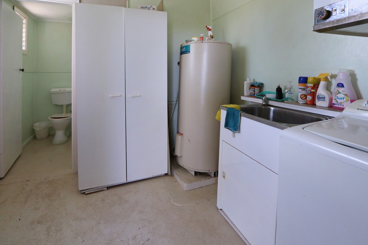 • External bathroom featuring bath/shower over, toilet located in the laundry. Spacious laundry with concrete floor and room for storage.