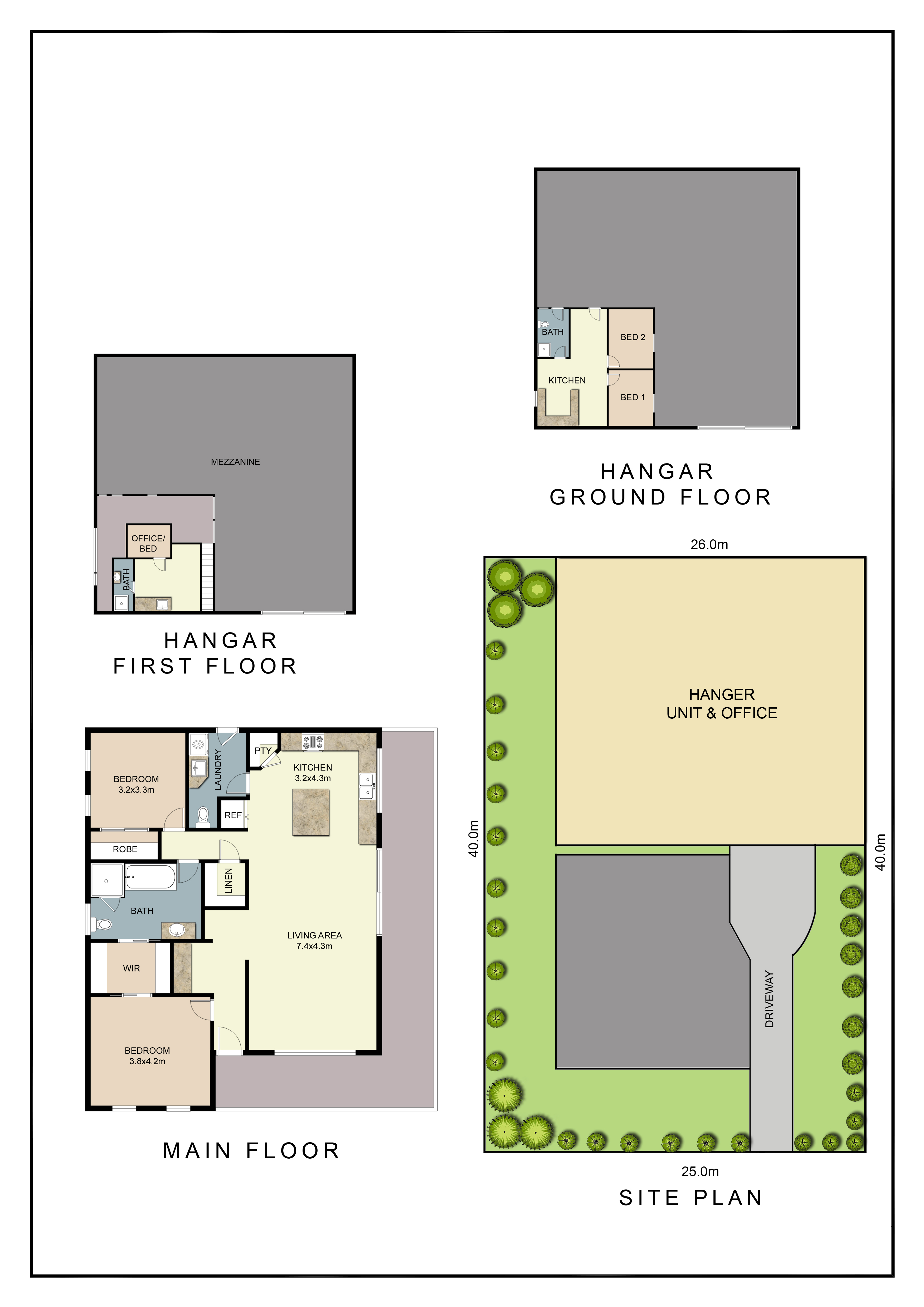 • Bathroom includes toilet, sink, shower. Disability friendly. Separate instant gas hot water system services the hangar.