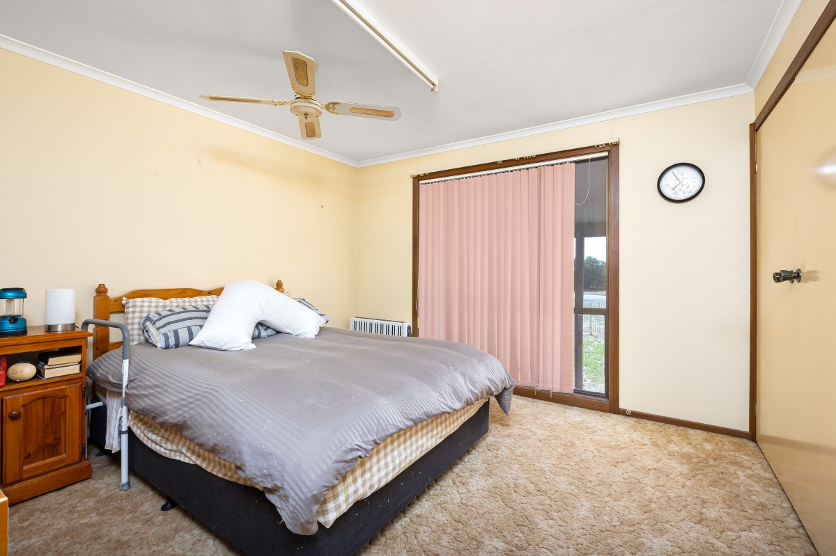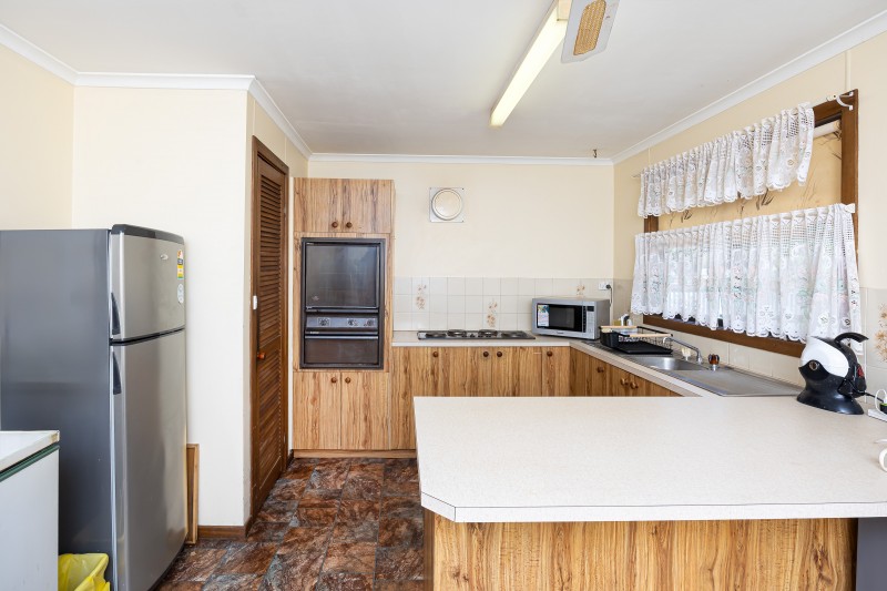 Internally, the home features three well-sized bedrooms, two of which include built-in wardrobes and ceiling fans. The generous living area is equipped with multiple heating and cooling options, including a woodfire, gas heater, and split system air conditioning, ensuring year-round comfort. The combined kitchen and dining area is both practical and inviting, featuring electric cooking, a walk-in pantry, and sliding door access to the back verandah. The main bathroom includes a large shower, vanity, and toilet, while an additional separate toilet in the hallway adds extra convenience. A well-designed laundry with a washtub and external access ensures optimal efficiency within the home.