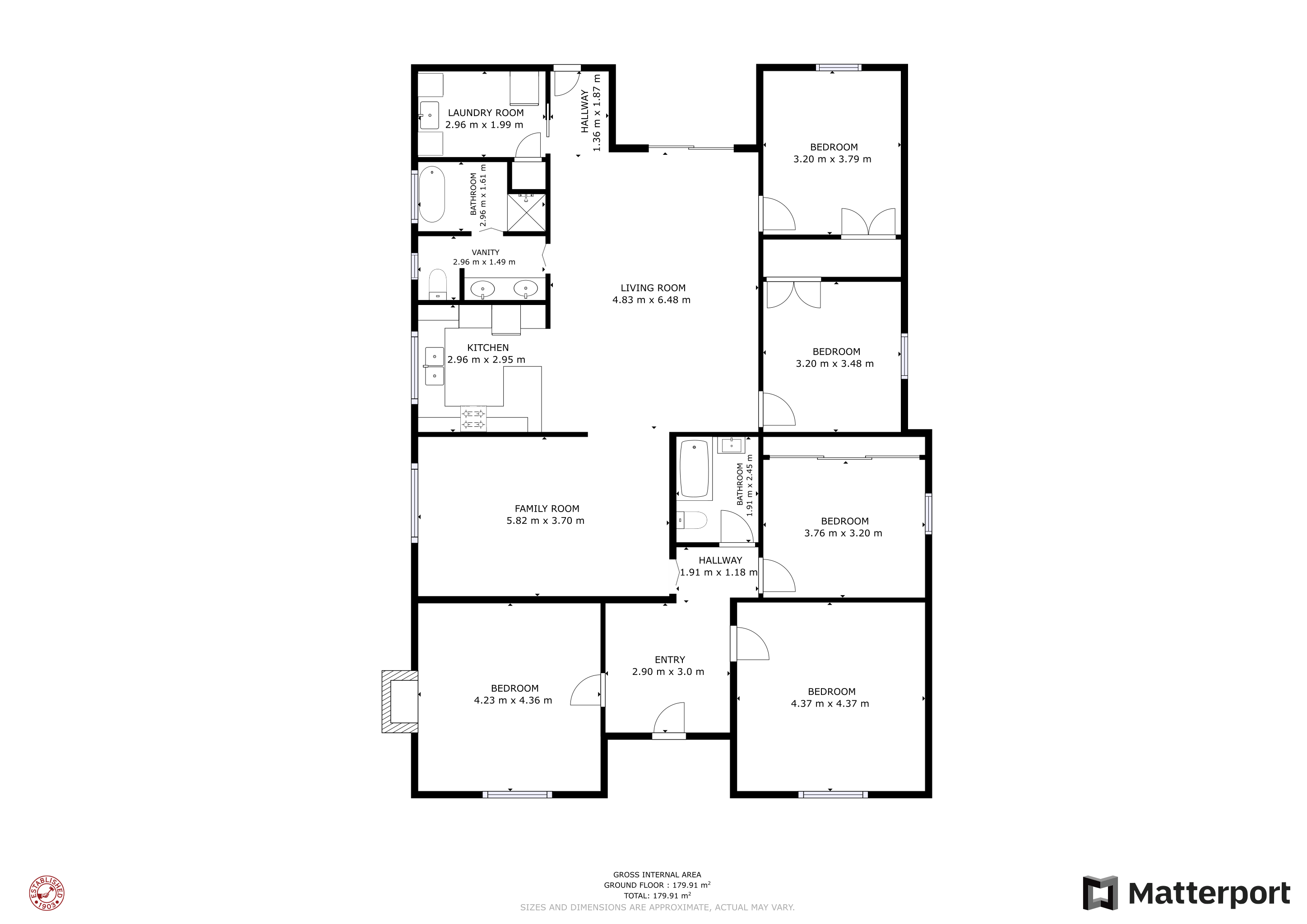 • Large laundry includes tiled floor, great storage and linen press.