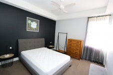 This fully furnished, top floor, 1-bedroom unit offers comfort, functionality, and convenience. The bedroom includes a double bed, clothes hanger and a large set of draws, while the bathroom doubles as a laundry, featuring a walk-in shower, toilet, vanity, laundry sink, and washing machine.
