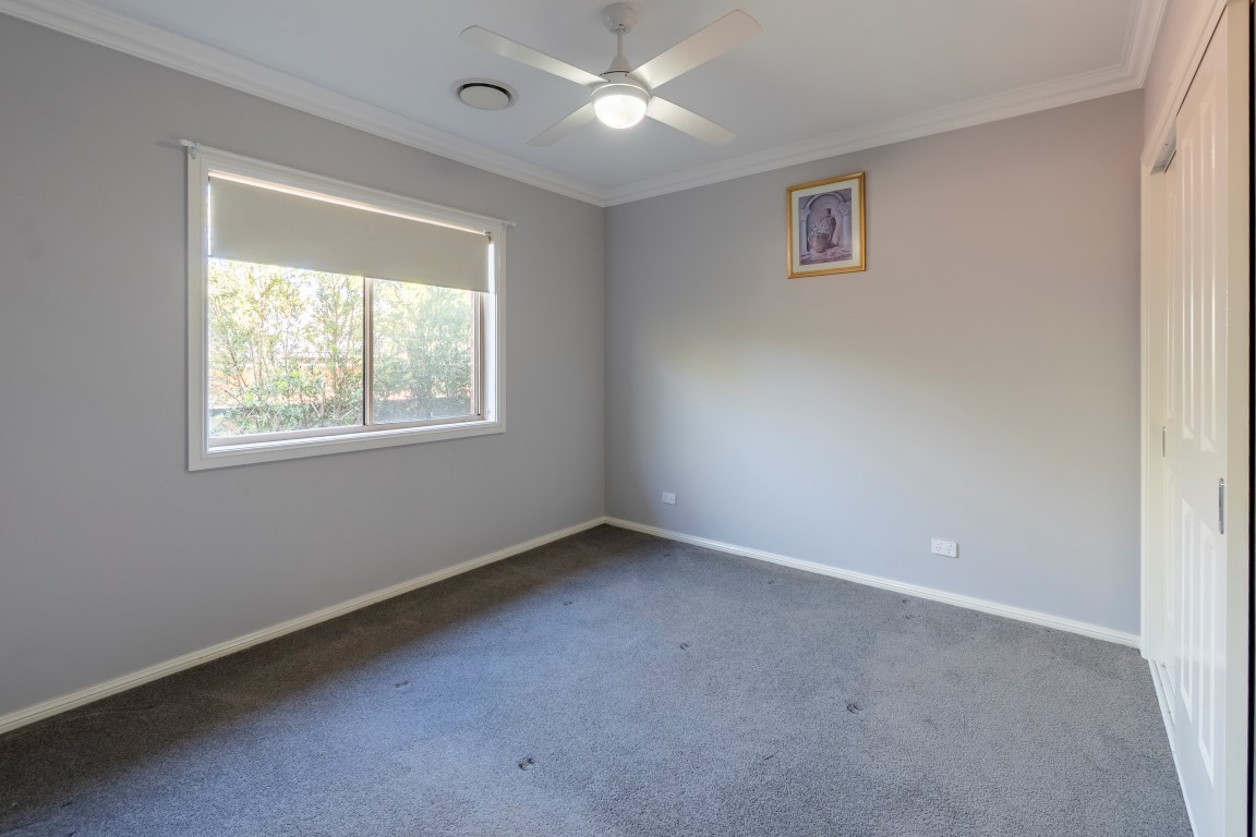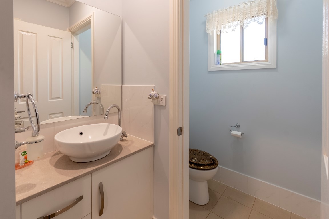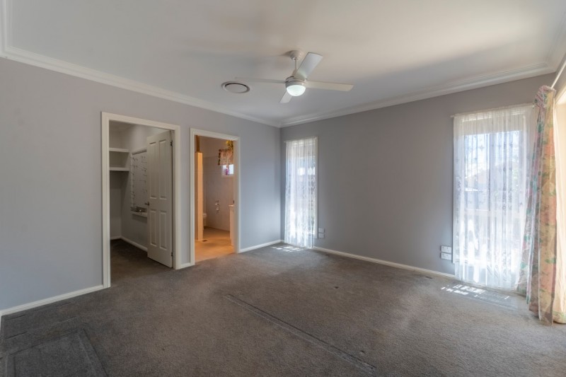 The master suite offers a walk-in robe and ensuite with walk-in shower and toilet, while bedrooms two and three include built-in robes, ceiling fans, and carpet. The main bathroom features a large shower, vanity, and separate toilet, while the tiled laundry includes extra storage and third toilet to complete the practical layout.