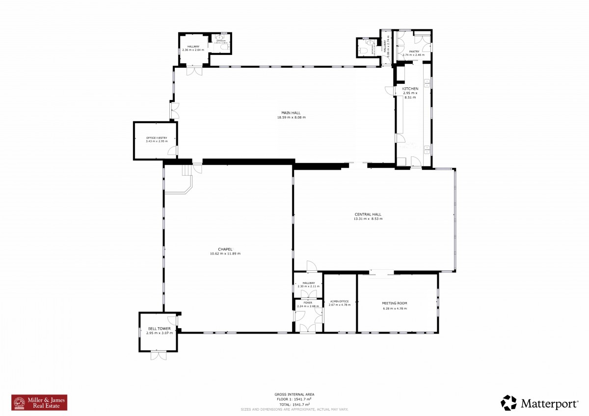 • Central hall - connects the church and main hall.