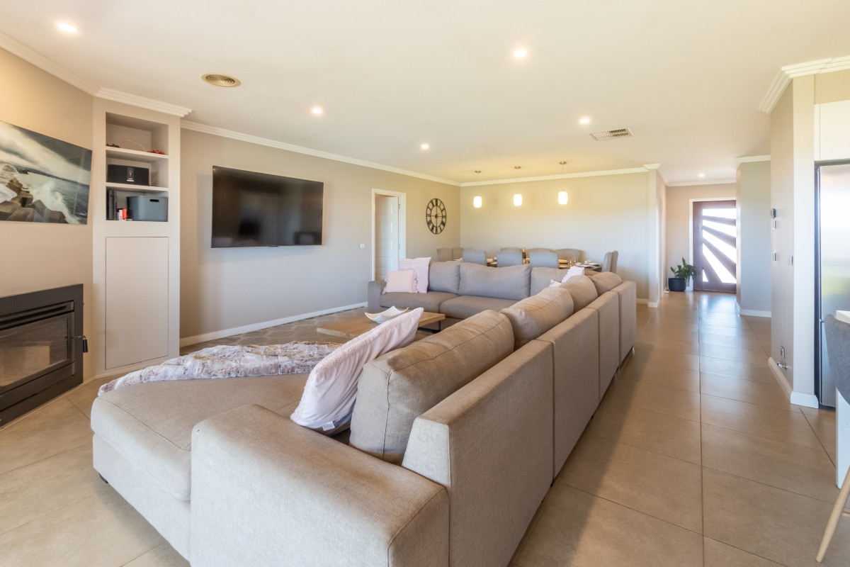 Climate control is provided by a ducted evaporative unit, LPG gas bayonets, woodfire with heat transfer system, and triple glazed windows/doors. Nothing has been left out, with underfloor heating in both bathrooms, 3-step cornice, 600mm tile, triple glazed windows and stacker doors quality day/night blinds, shutters and curtains throughout.