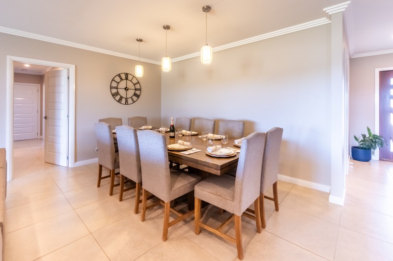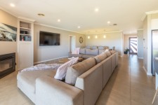 Built for entertaining and enjoyment; the home is centred around a generous open-plan kitchen, living and dining area, an inviting environment for everyday living and effortless entertaining. The gourmet kitchen is equipped with a 900mm gas cooktop, LG dishwasher, sleek cabinetry, waterfall benchtops and a substantial walk-in pantry with a second fridge alcove.