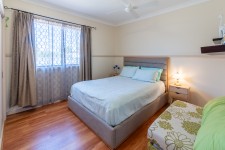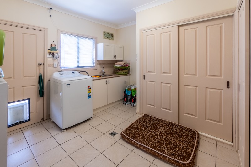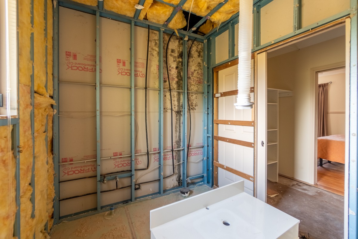 Accommodation includes three bedrooms, all with built-in robes and ceiling fans. The master suite is thoughtfully designed with a walk-through his-and-hers robe leading to a spacious ensuite room. NOTE ensuite has been taken back to frames, ready for the new owner to install a new one as they'd like. The two-way family bathroom offers a bath, shower-over-bath combination, tastic, toilet, and separate vanity. A tiled laundry with external access provides ample cupboard space.