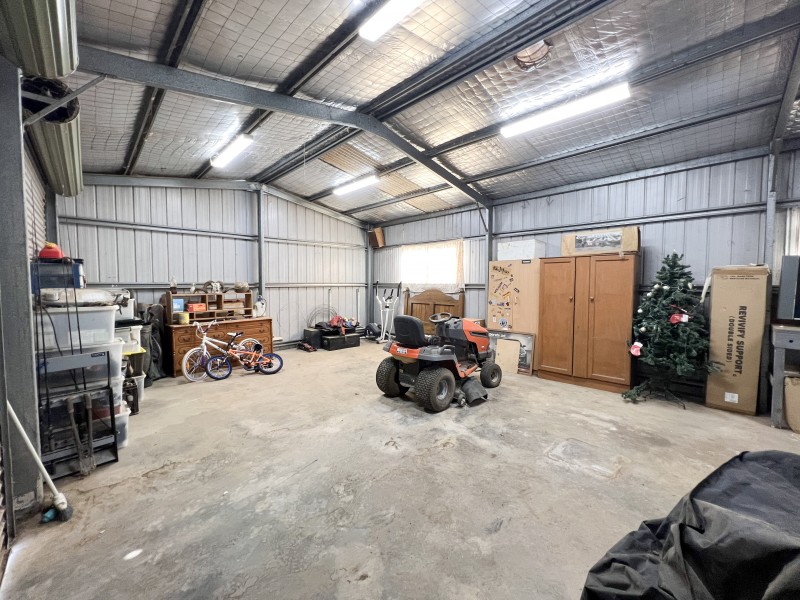 Step outside and you'll find an impressive undercover paved entertaining area that doubles as a carport, a semi-enclosed front verandah, and practical drive-through access via double gates leading through to the rear lane. Tradies, hobbyists, or those simply needing extra storage will appreciate the impressive Colorbond double garage with attached single carport. Complete with workbenches, a hand basin and a neat bathroom, this versatile space is perfectly set up for projects, storage or a workshop environment - while still offering ample room for vehicles, boats or trailers.