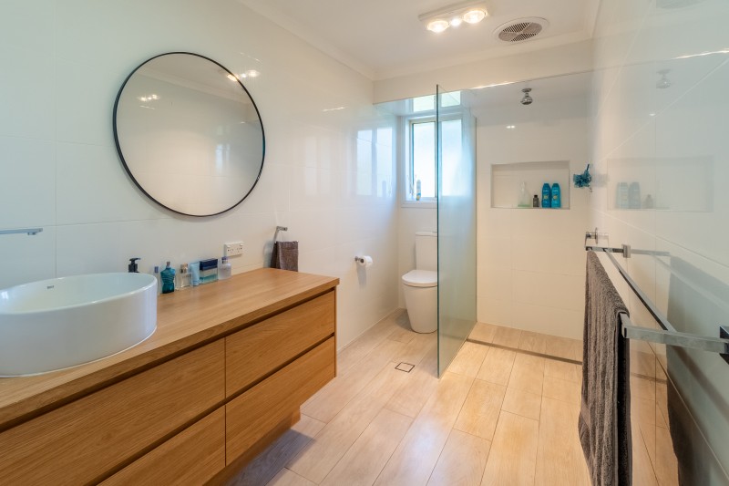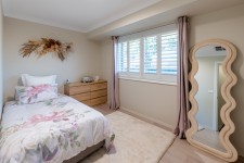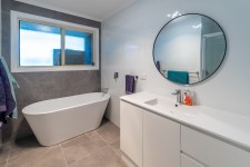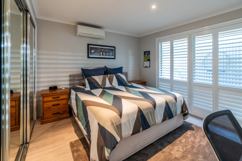 Accommodation is generous with five bedrooms throughout the home. The master suite offers a walk-in robe, reverse cycle unit and a beautifully updated ensuite with floor-to-ceiling tiling, walk-in shower and floating vanity. A guest bedroom also features built-in robes, reverse cycle air conditioning and its own full ensuite, while the remaining three bedrooms include built-in robes, easy-care vinyl flooring and modern shutters. The family bathroom has been stylishly updated and includes a bath, vanity and shower.