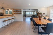The well-appointed kitchen includes electric cooking, dishwasher, breakfast bar, pantry and attractive pendant lighting, making it both stylish and practical for everyday living.