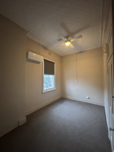 The property features two carpeted bedrooms, both with reverse cycle air conditioner and one with a ceiling fan.