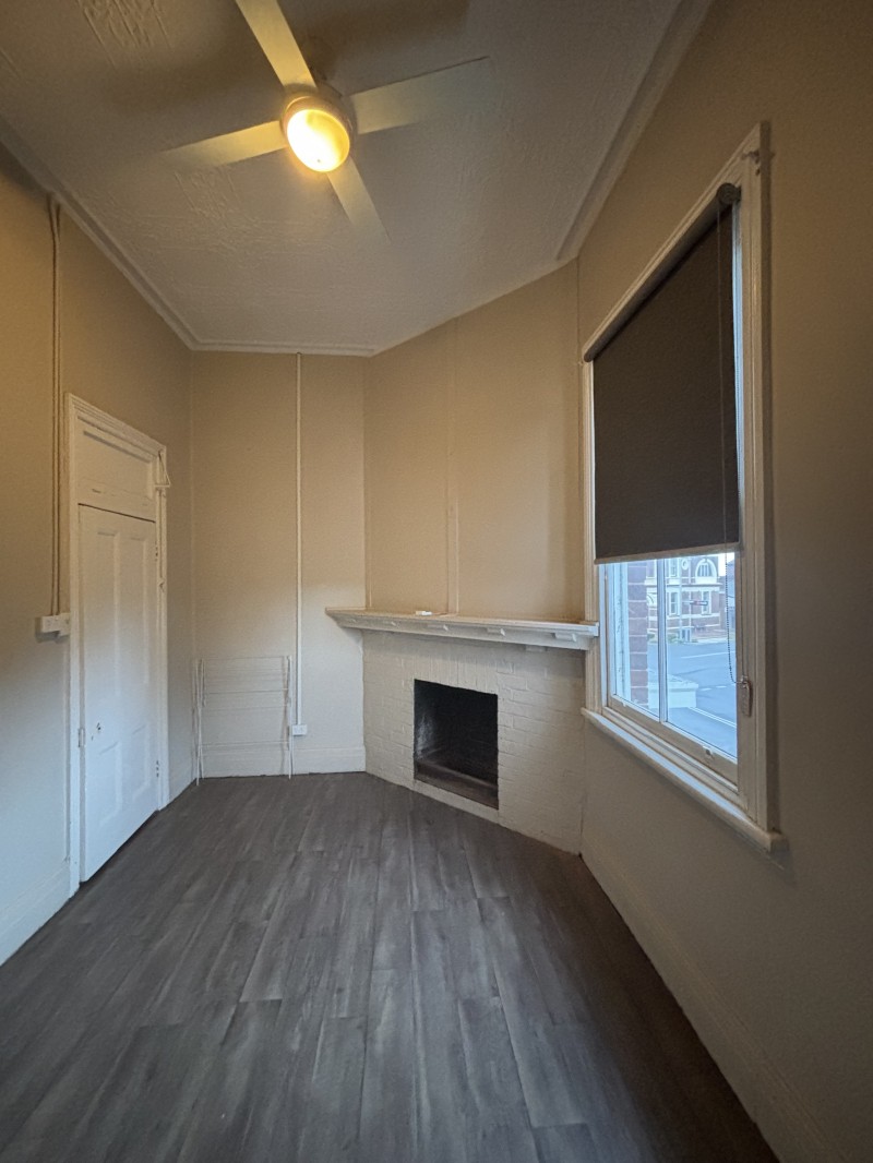 The kitchen is equipped with an electric grill, oven and induction cooktop. Kitchen leads into the lounge room/ living area, it features a decorative (non- working) open fireplace.
