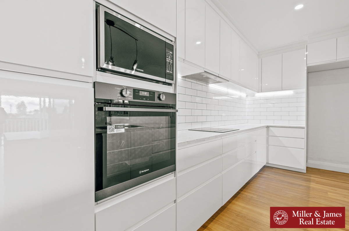 • Generous kitchen with island bench, electric cooking, dishwasher, and ample storage.