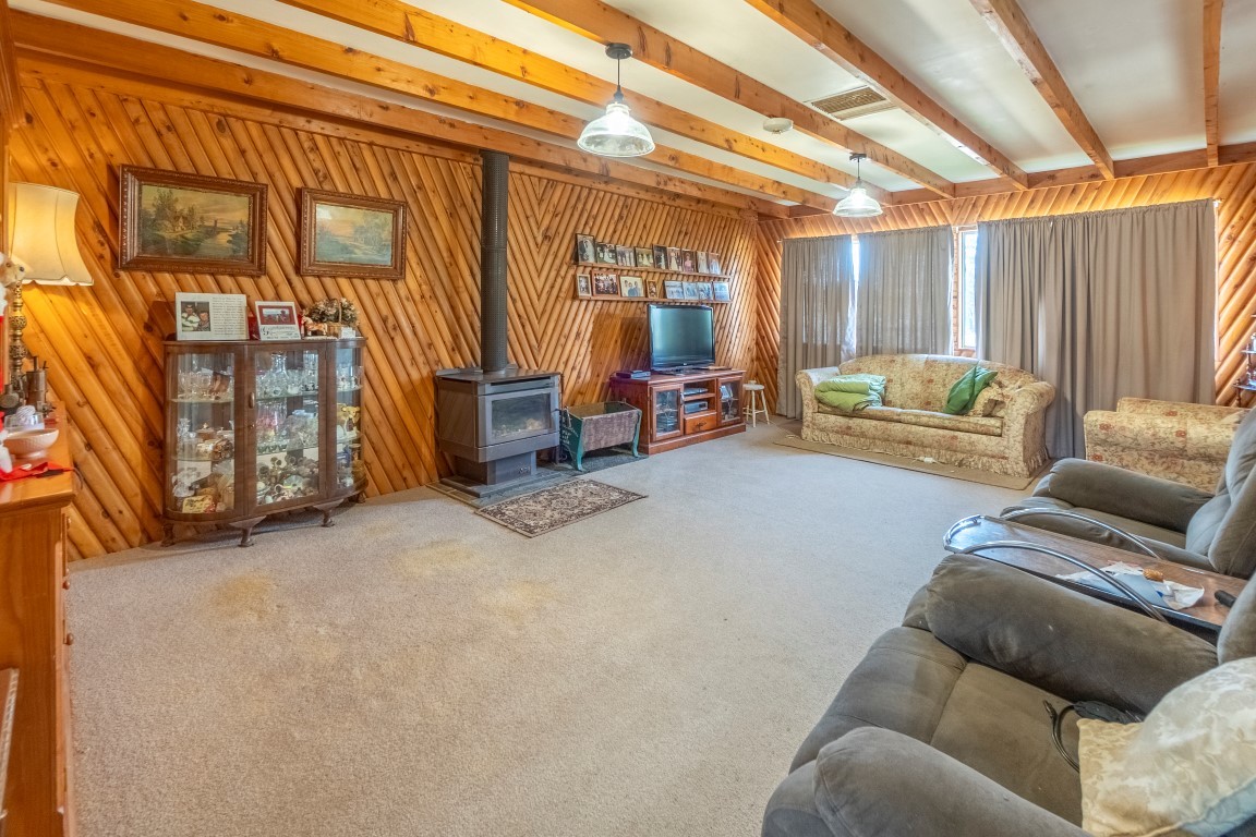 • Good-sized vinyl clad and iron roof build, featuring a front veranda and generous living room with a central woodfire.