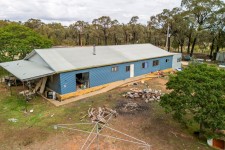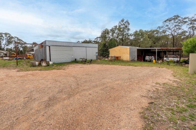 • Good steel framed workshop measuring approx. 12x10m with concrete floor, power, mechanics pit, 2 large slider doors and further 10m parking skillion at rear.