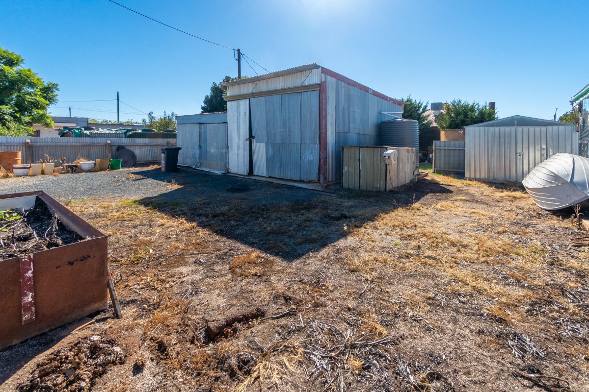 Outdoors, the property offers established gardens and lawn areas, a double garage/workshop accessible via the rear lane, a garden shed set on a slab, and fantastic steel bird aviaries. Two rainwater tanks add to the property's practicality and sustainability.